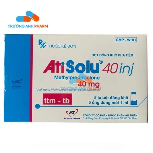 Là thuốc dùng đường tiêm, Atisolu 40 inj được các bác sĩ sử dụng trong điều trị các trường hợp như: ất thường chức năng vỏ thượng thận, Rối loạn dị ứng, Bệnh lý về da, dạ dày ruột, hô hấp, huyết học, mắt, gan, thận, thần kinh,…Dưới đây là môt số thông tin về thuốc Atisolu 40 inj.