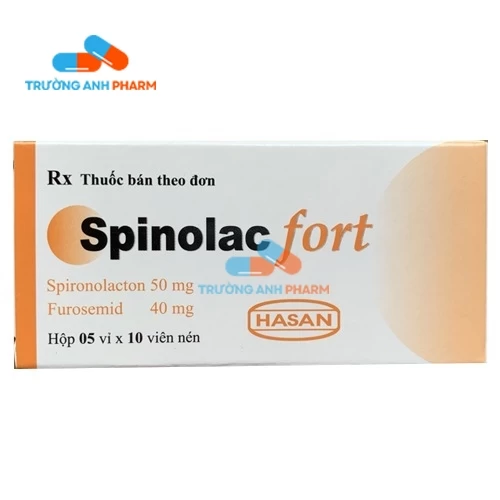 Spinolac fort Hasan có thành phần chính là hoạt chất Spironolacton và Furosemid. Thuốc được chỉ định dùng trong trường hợp điều trị phù do cường aldosteron thứ phát; xơ gan hoặc suy tim sung huyết mạn tính, điều trị tăng huyết áp vô căn ở những bệnh nhân tăng aldosteron nên hạn chế. Thuốc được bào chế ở dạng viên nén. Spinolac fort Hasan có số đăng ký là VD-29489-18.