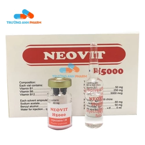 Thuốc Neovit H5000 - Hộp 4 lọ bột đông khô+4 ống dung môi hiện đang được bán sỉ lẻ tại Trường Anh Pharm. Tùy thời điểm mà giá sản phẩm sẽ có sự thay đổi khác nhau. Khách hàng vui lòng liên hệ hotline công ty Call/Zalo: 090.179.6388 để được giải đáp thắc mắc về giá.
